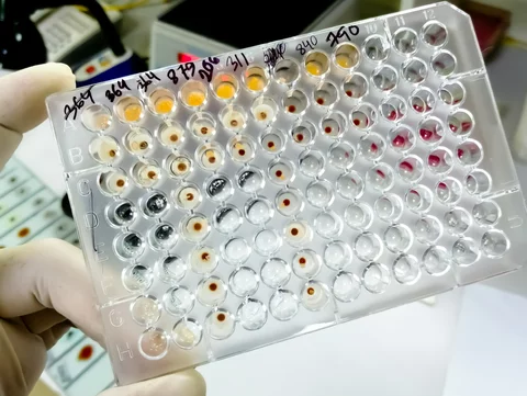 Pierwszy etap testu ELISA uwzględnia opłaszczanie 96-dołkowej płytki antygenem lub przeciwciałem.